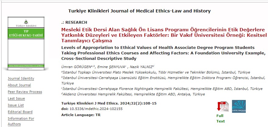 Öğr. Gör. Ümran Görügen’in Makalesi Türkiye Klinikleri Tıp Etiği-Hukuku-Tarihi Dergisinde Yayınlandı