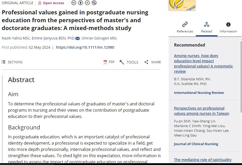 Öğr. Gör. Ümran Görügen’in Makalesi International Nursing Review Dergisinde Yayınlandı